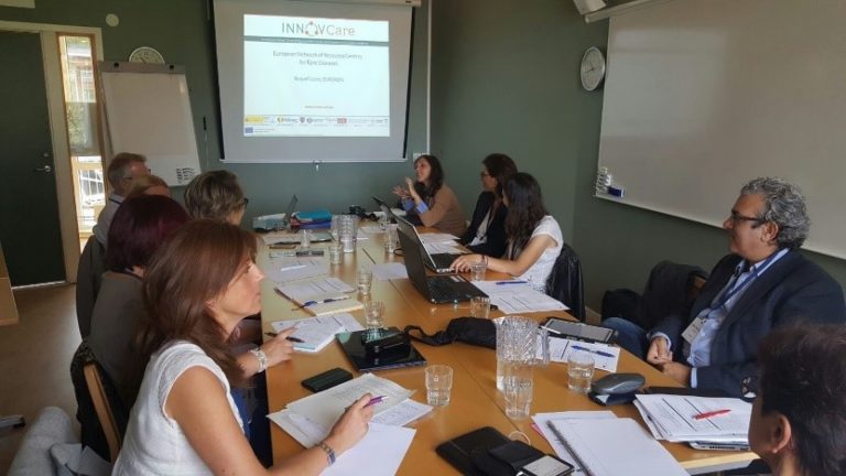 El Proyecto INNOVCare (2015-2018) representa un paso más, materializando dichas recomendaciones y proponiendo un Enfoque Innovador Centrando la atención en el Paciente para la provisión de Prestaciones Sociales. En este proyecto financiado por la UE, participan un total de seis países (España, Francia, Suecia, Eslovenia, Rumania, Austria) representados por prestigiosas entidades europeas de ámbito social, sanitario (EURORDIS, Karolinska Intstitute, Centro de Referencia de Rumania, Centro de Innoavación Social de Austria…), distribuidos en 9 grupos de trabajo. IMSERSO-CREER Centro de Referencia Estatal de Atención a personas con enfermedades raras y sus familias, lidera el consorcio como coordinador del proyecto. El grupo de trabajo CREER que participa como coordinadores en el proyecto está formado por Aitor Aparicio, Vanesa Sánchez y Marta Fonfría.